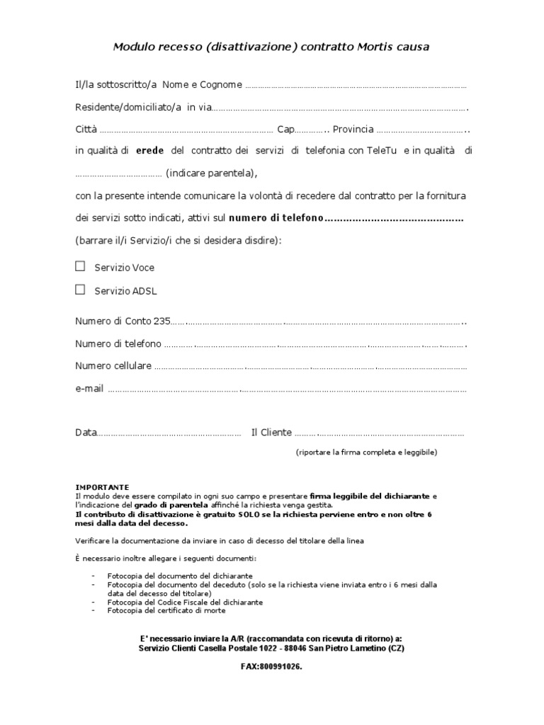 Lettera disdetta teletu fac simile